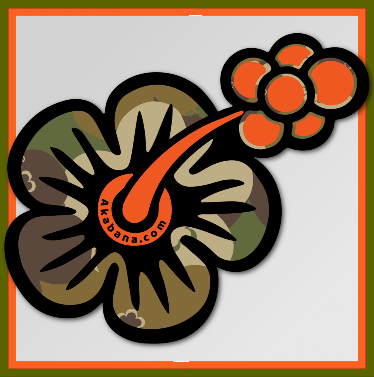 Get iconic style with this camouflage and safety orange Akabana hibiscus flower magnet. This unique color-way captures the diverse possibilities of expressing the Akabana hibiscus bloom!