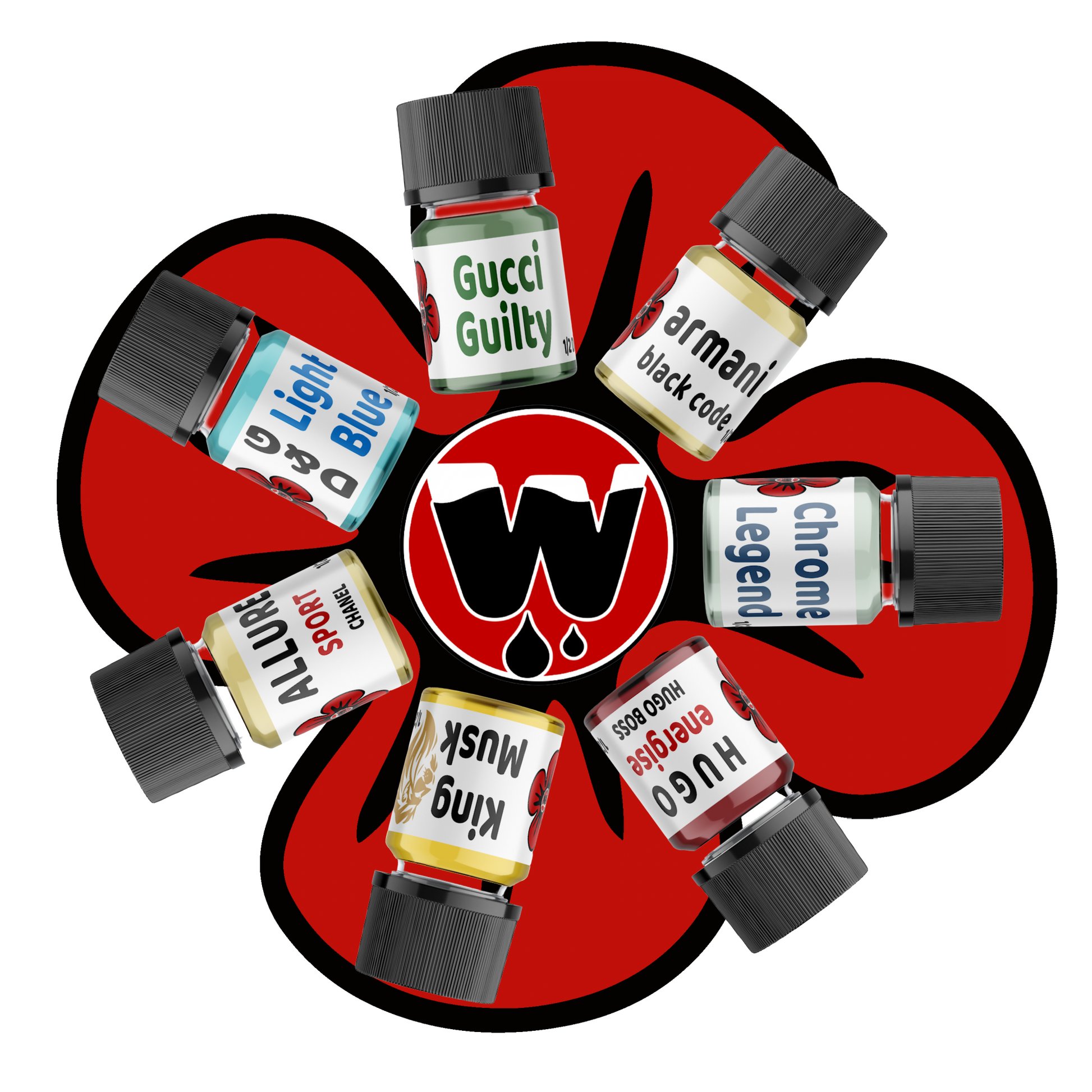 7) 1/2 Dram screw top bottles filled with undiluted, Premium Grade, Designer Fragrance Body Oil