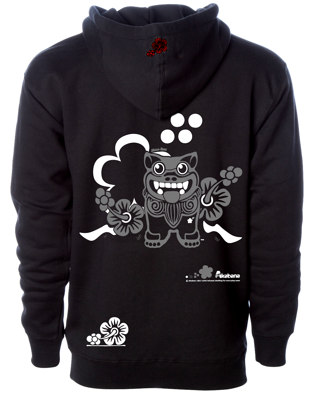 This Shisa-Tonz sweatshirt contributes to the mythological narrative of Okinawa Shisas, and serves to ward away negative energy while aiding one's self-actualization and spiritual growth. A symbol of protection and positive energy. Adding blessings to the wearer, it is sure to become a treasured item.
